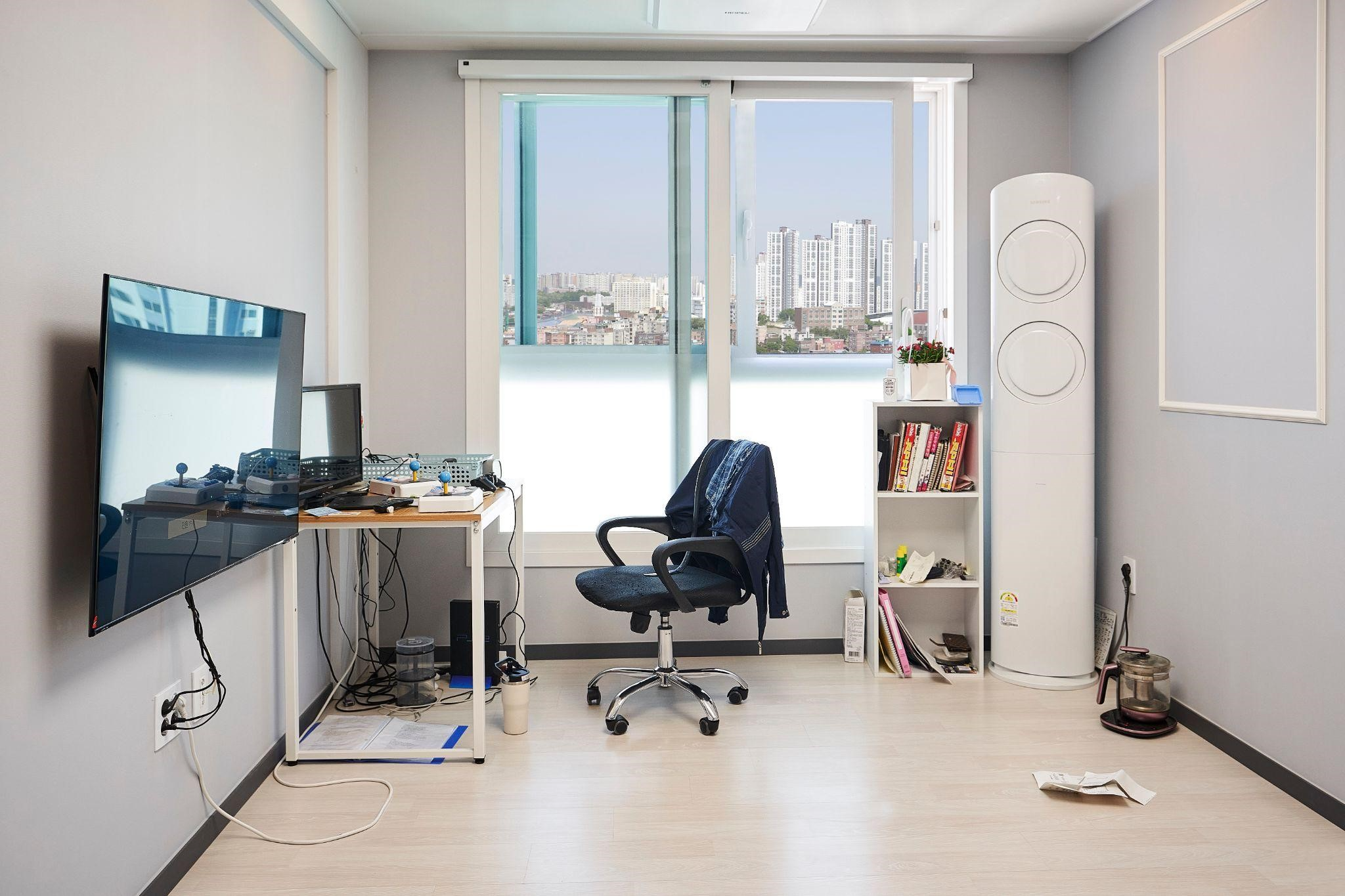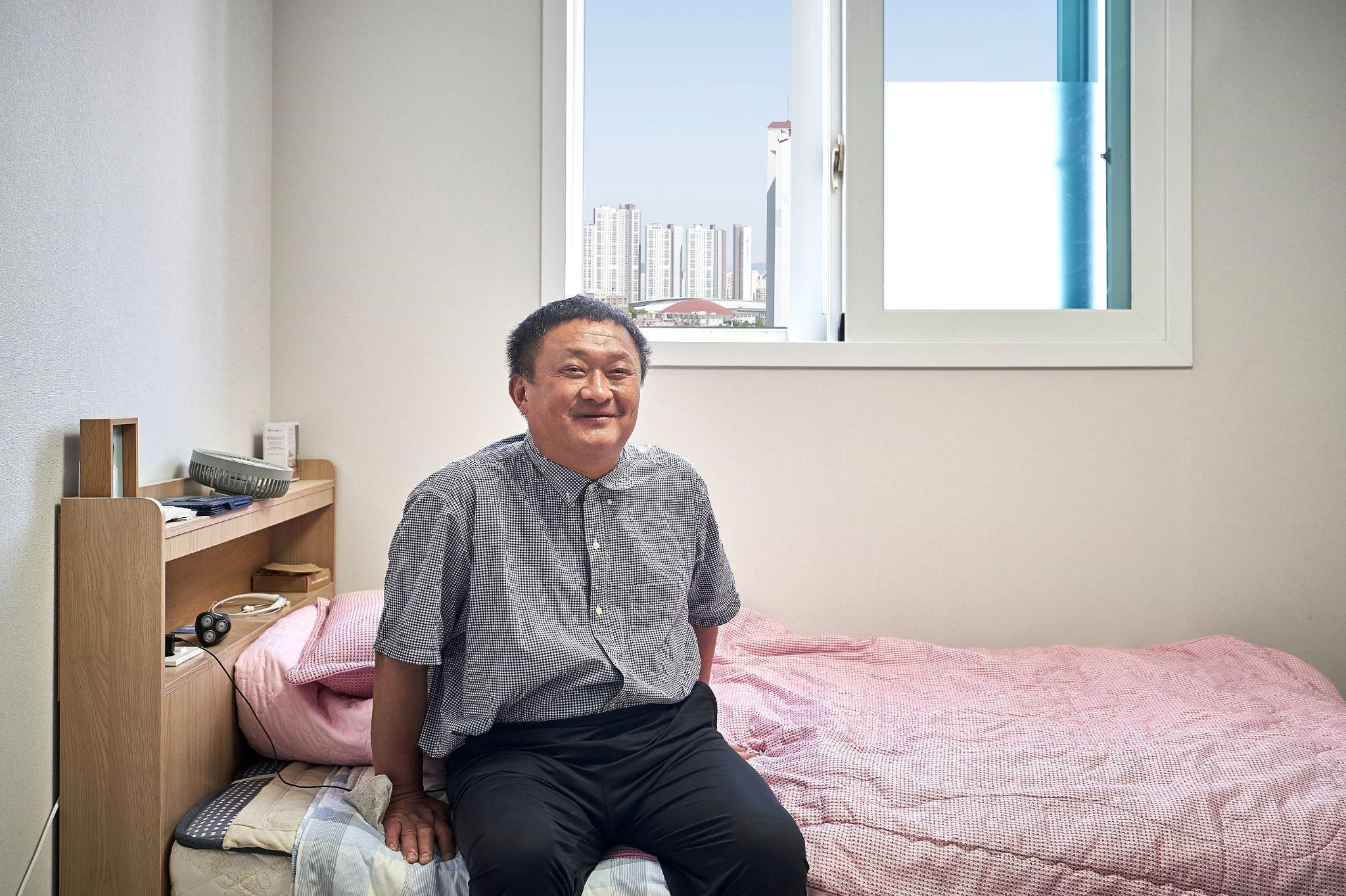 근데 여기가 20층이라 조금 무서워요. 전에 살던 시설은 1층이었는데 여기는 너무 높아요. 창문 밖을 보면 떨어질 것 같은 기분이 들어요. 창문 아래쪽에 시트지를 붙여 놓았더니 이제는 괜찮아요. 거실 창문에도 시트지를 붙여 놓았어요.