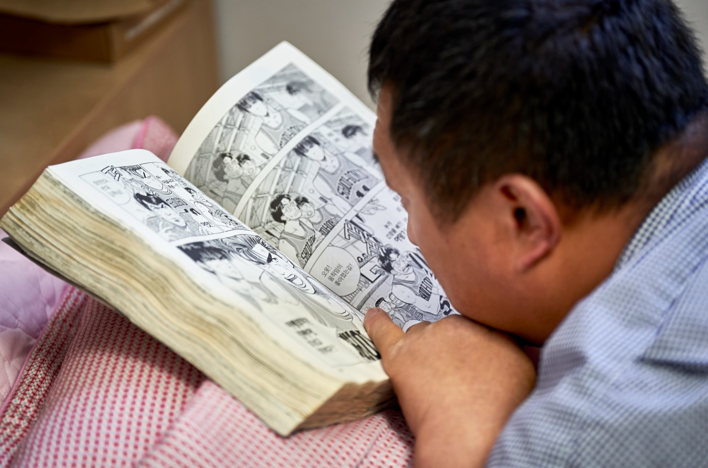 만화책을 볼 때도 있어요. 침대에 엎드려서 만화책을 보면 정말 좋아요.