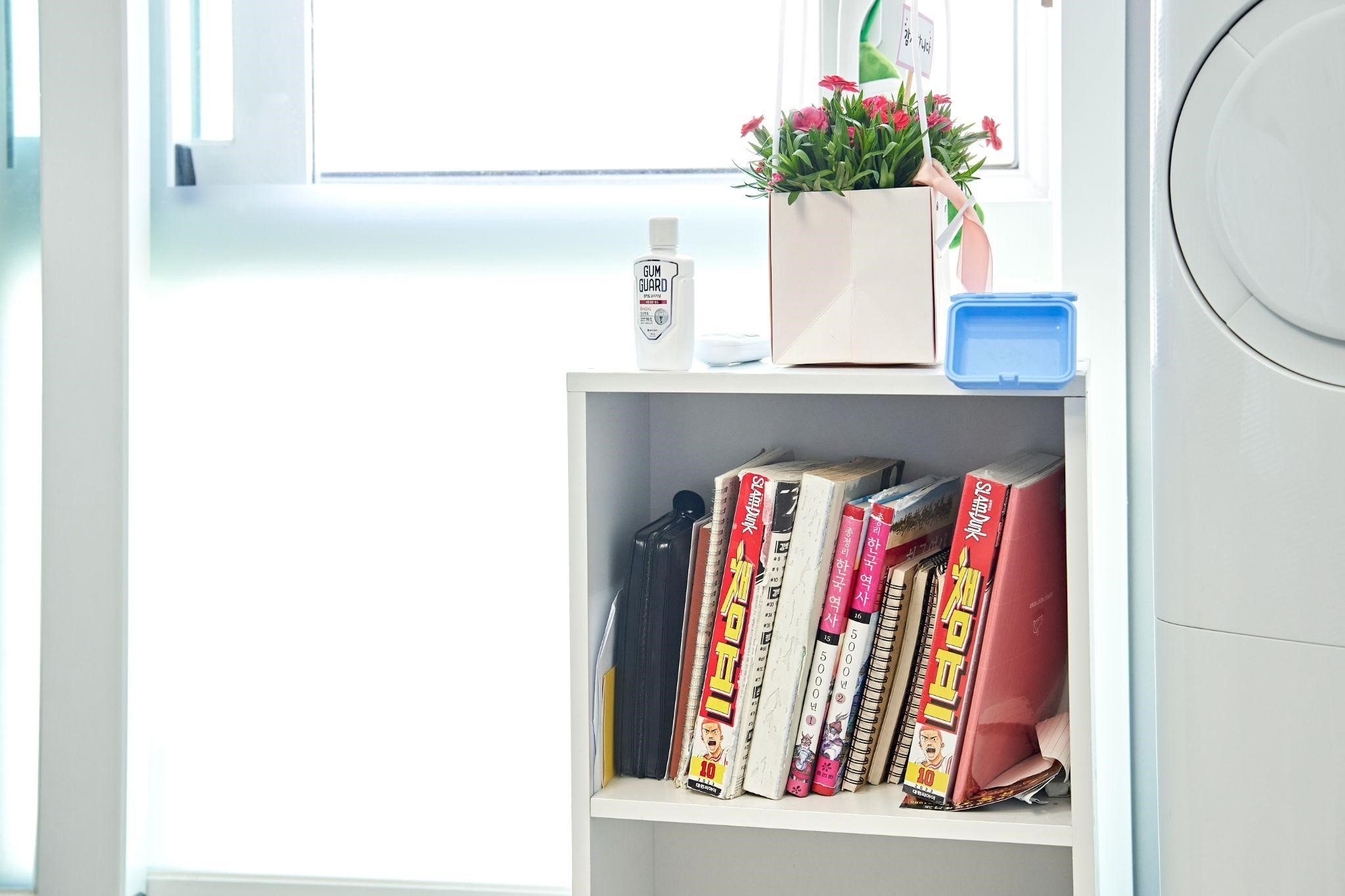 만화책이 있어요. 쉴 때 만화책 보는 걸 좋아해요. 아까 침대에서 본다고 한 만화가 이거예요.