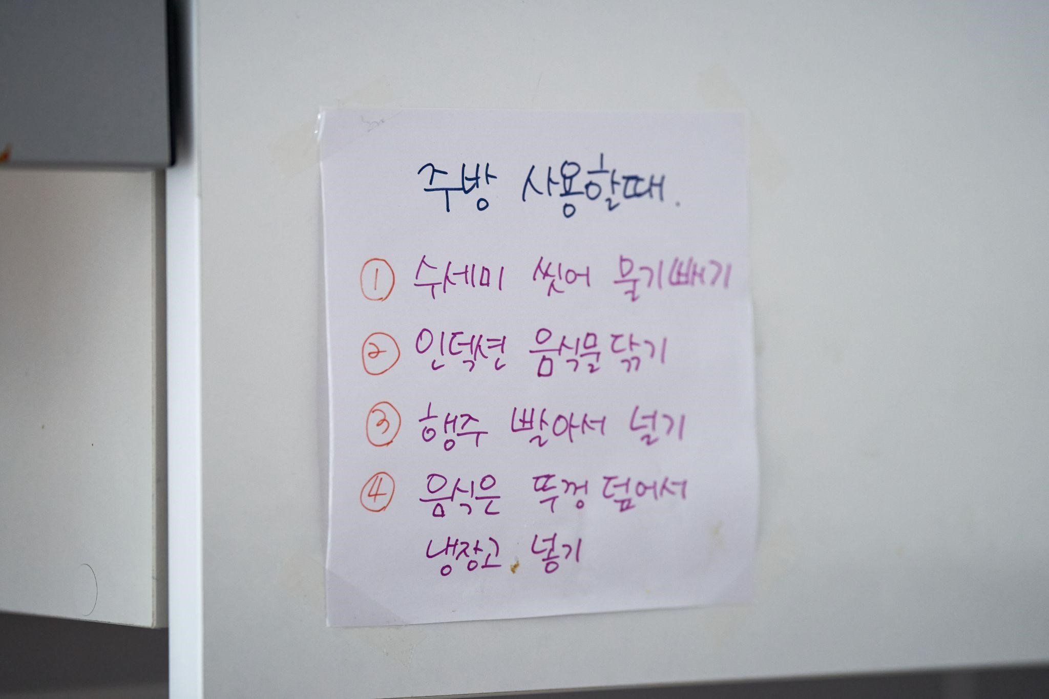 시설에서는 한 방에 2명이서 지내야 해서 불편했어요. 그리고 시설에는 규칙이 있어요. 너무 늦게 자면 안 되고, 청소나 맡은 역할을 꼭 해야 해요. 규칙을 지키지 않으면 안 되는 게 불편했어요.