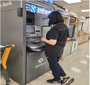 은행에 함께 동행하여 은행창구와 현금출납기 사용법에 대해 교육을 실시 하고 있습니다.