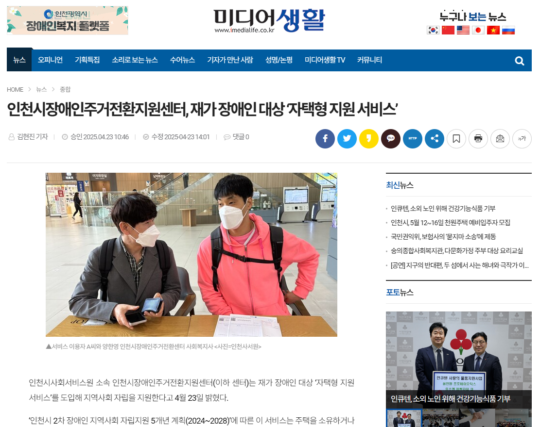 (미디어생활0423) 인천시장애인주거전환지원센터, 재가 장애인 대상 '자택형 지원 서비스'