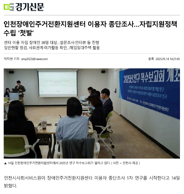 (경기신문0514) 인천장애인주거전환지원센터 이용자 종단조사...자립지원정책 수립 '첫발'