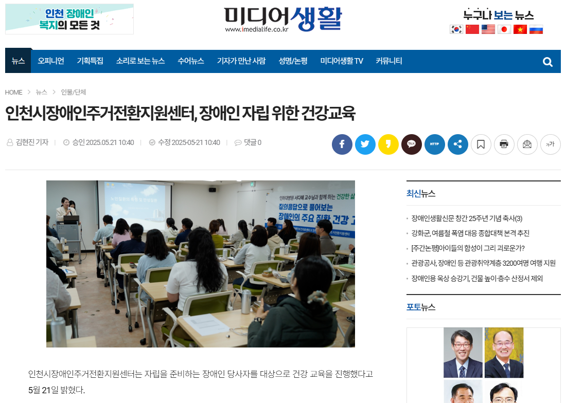 (미디어생활0521) 인천시장애인주거전환지원센터, 장애인 건강교육 실시