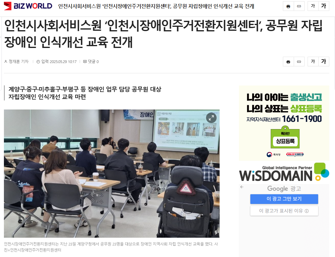 (비즈월드0529) '인천시장애인주거전환지원센터', 공무원 자립 장애인 인식개선 교육 전개