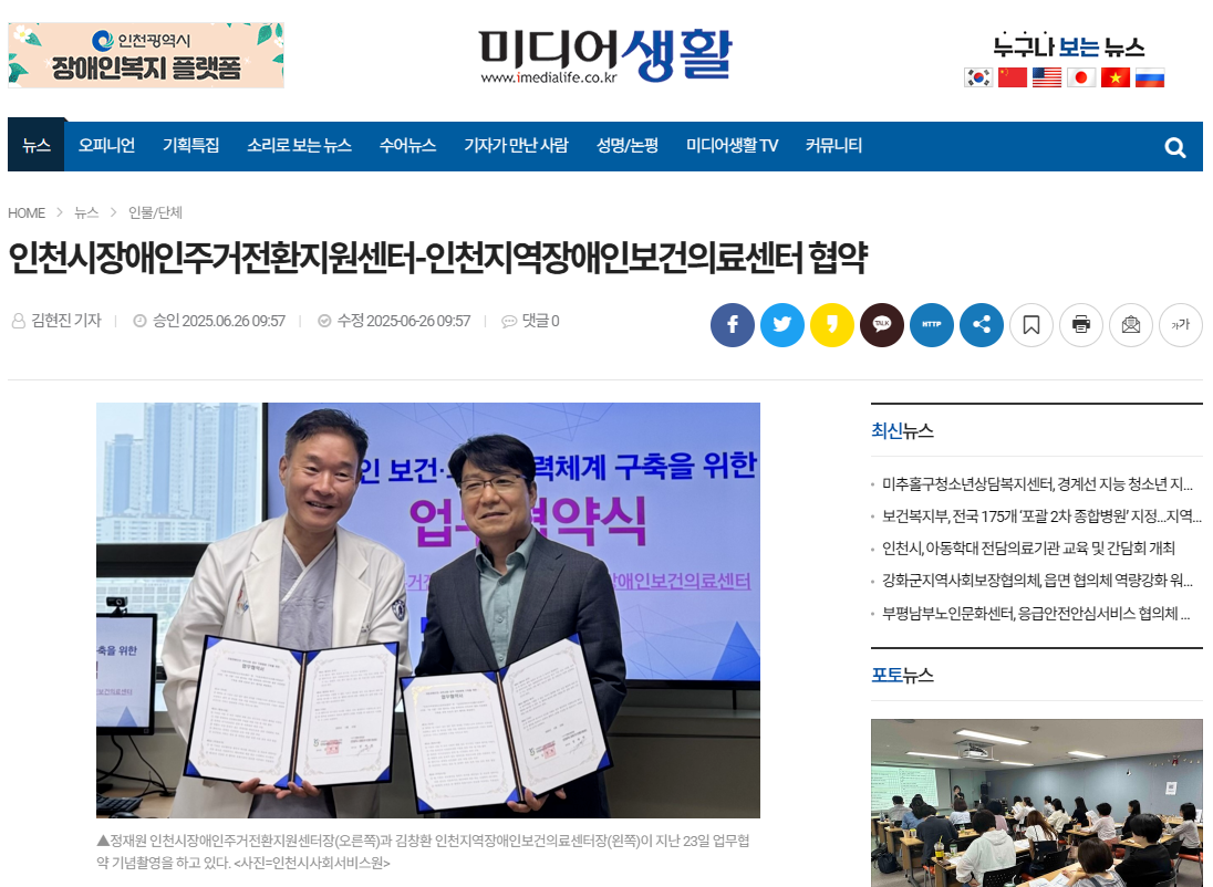 (미디어생활0626) 인천시장애인주거전환지원센터-인천지역장애인보건의료센터 협약