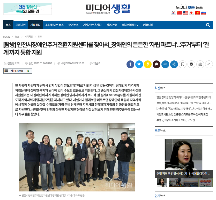 (미디어생활 0126) 인천시장애인주거전환지원센터를 찾아서_장애인의 든든한 ‘자립 파트너’…‘주거’부터 ‘관계’까지 통합 지원
